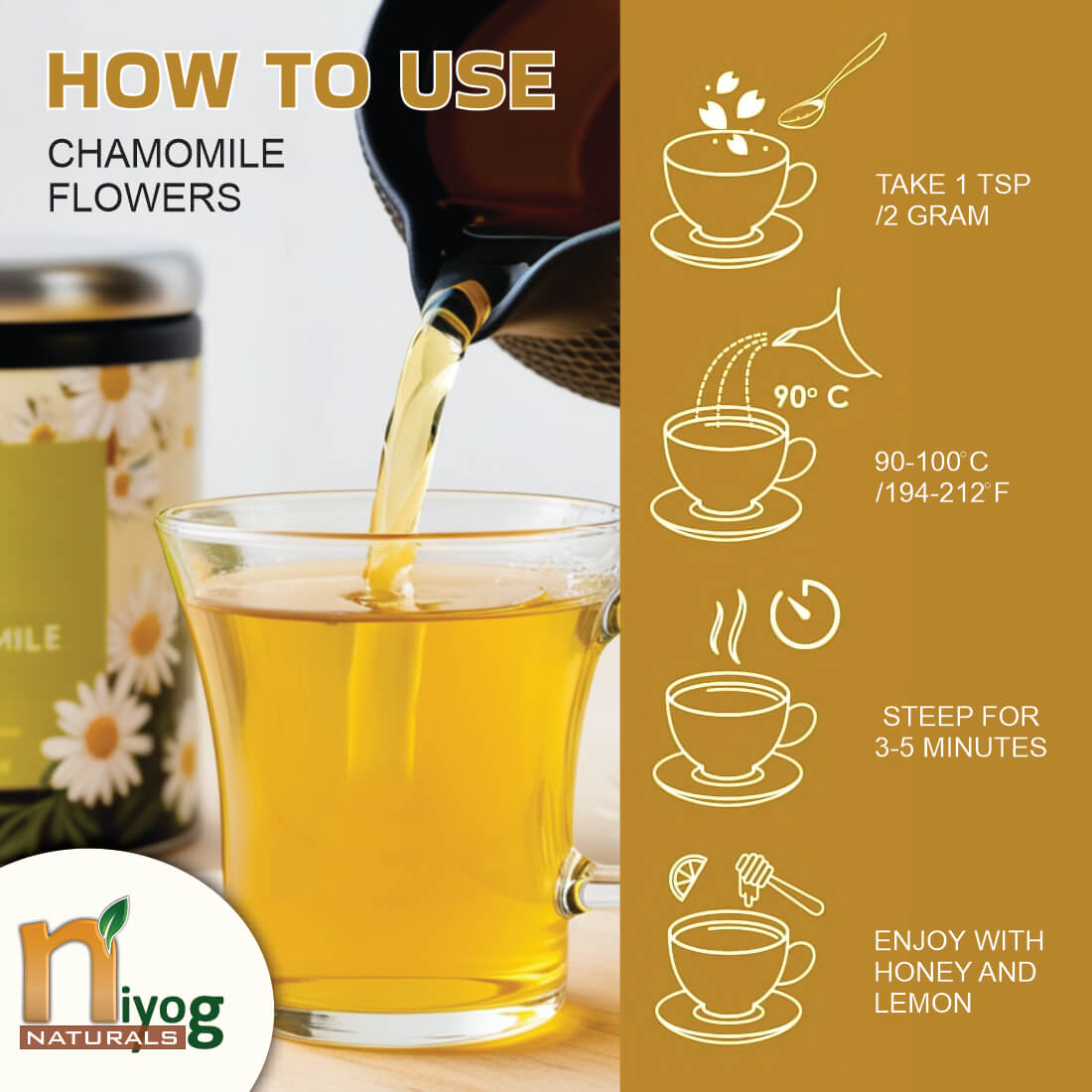 With Niyog Naturals, you get 100% pure, chemical-free, and preservative-free Chamomile flowers, ensuring maximum freshness and effectiveness. Perfect for anyone looking to add a natural, soothing ritual to their daily routine.