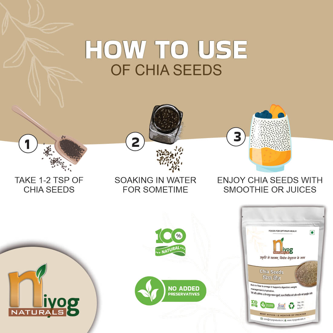 With Niyog Naturals, you get 100% pure, chemical-free, and preservative-free chia seeds, ensuring a clean, natural, and healthy superfood experience.