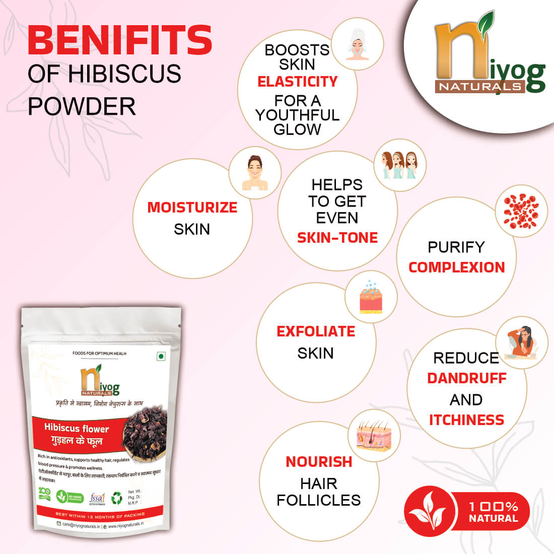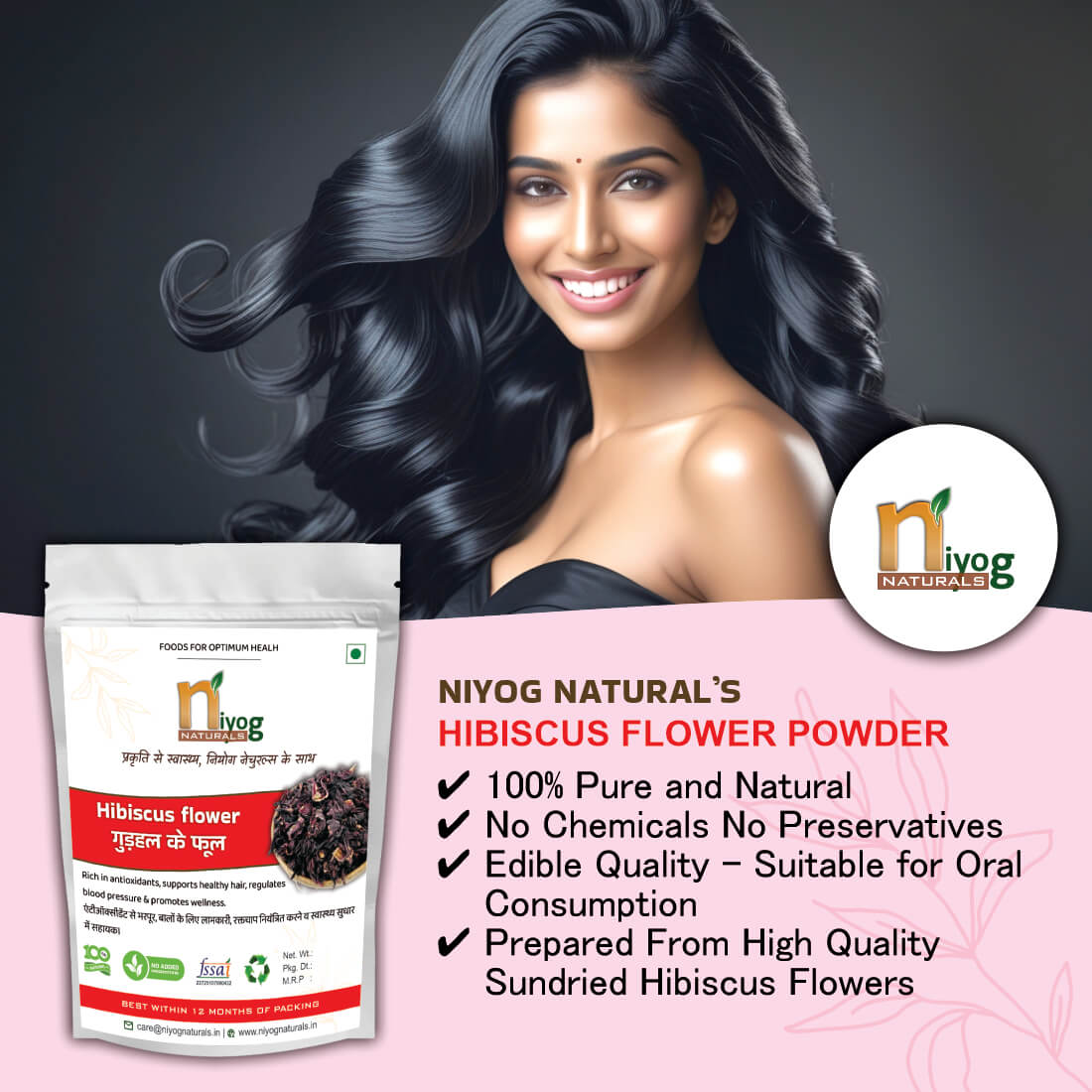 With Niyog Naturals, you get 100% pure, chemical-free, and preservative-free hibiscus flower powder, perfect for anyone looking for a natural solution for hair and skin care.