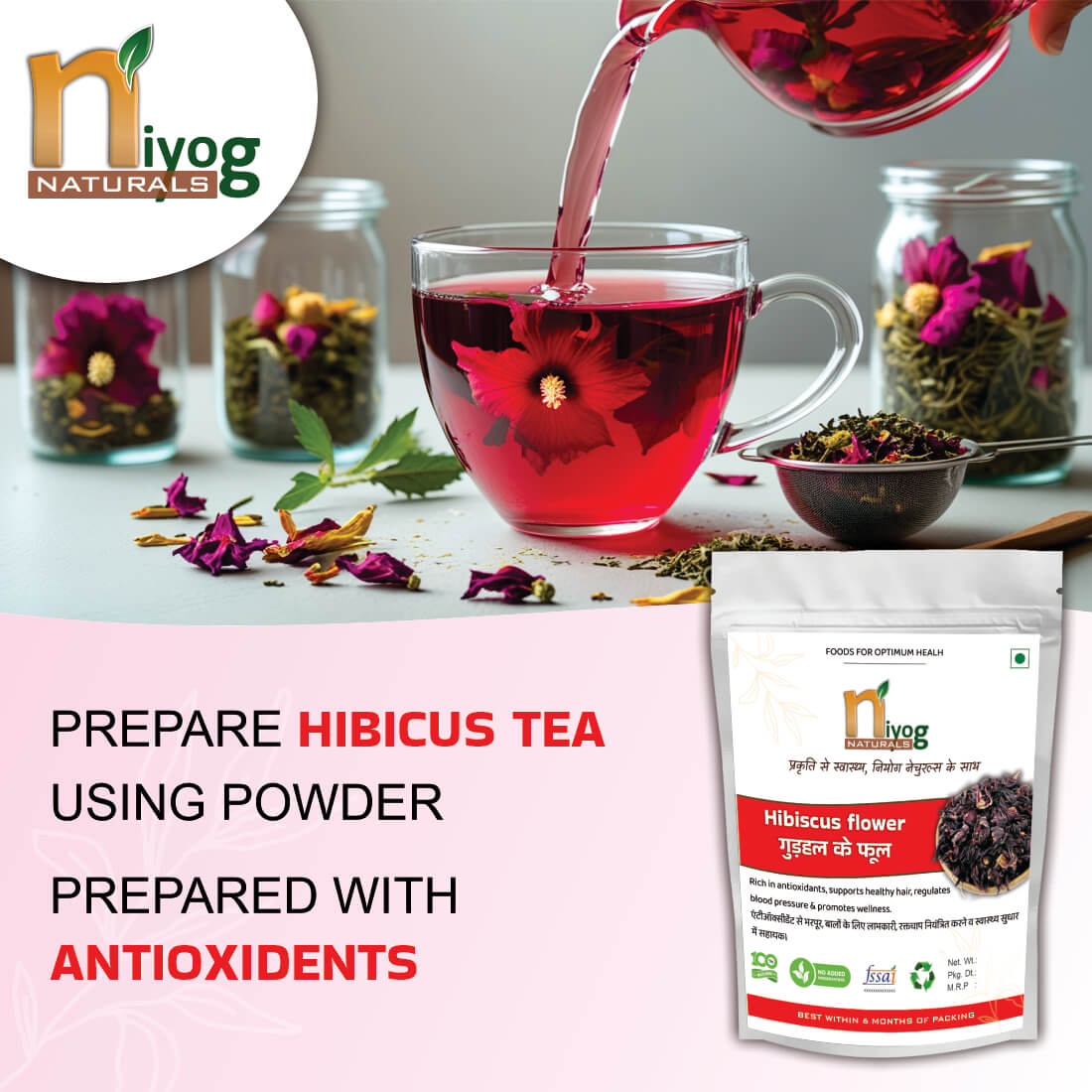 Niyog Naturals Hibiscus Flower Powder (Hibiscus sabdariffa) is a premium herbal powder, carefully sourced and finely ground to preserve its natural goodness. Hibiscus has been traditionally used in Ayurveda for centuries as a powerful herb for hair and skin health.